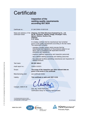 浙江久立鋼構工程有限公司,自2001年2月立足于中國經(jīng)濟騰飛的核心區域--長(cháng)三角的湖州市,作為久立集團的全資子公司,本公司不僅榮獲湖州市重合同守信用單位、高新技術(shù)企業(yè)、AAA 級信用企業(yè)等榮譽(yù),更是中國鋼結構協(xié)會(huì )和浙江建筑行業(yè)協(xié)會(huì )鋼結構分會(huì )的重要團體會(huì )員,展示了我們在行業(yè)內的權威地位和卓越影響力。